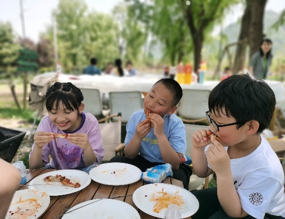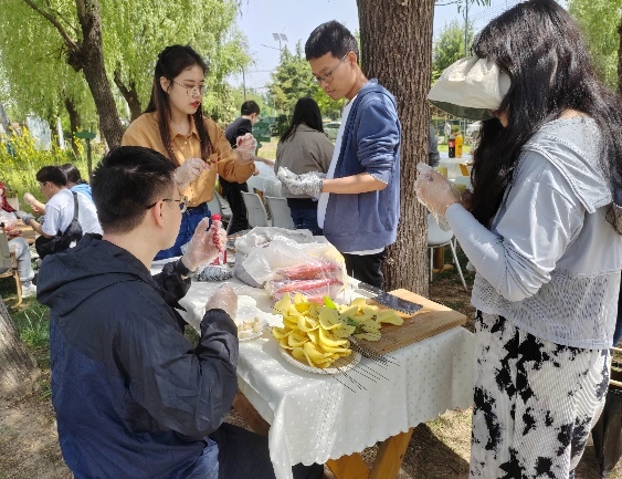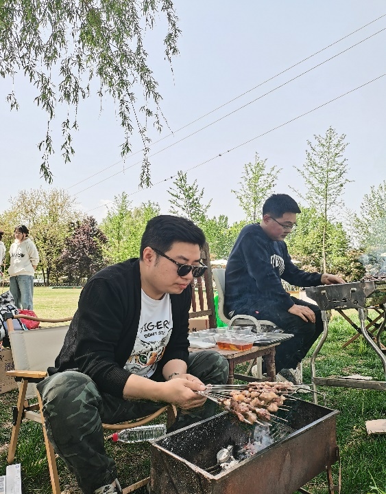 人間煙火氣,最撫凡人心,春游最不能少的就是音樂燒烤啦,大家分工明確,有條不紊的進(jìn)行著擇菜、洗菜、切菜、串菜、串肉,各位燒烤師們毫不吝嗇地展現(xiàn)出嫻熟的烹飪技巧,烤雞翅、烤腸、烤羊肉、烤牛肉、烤玉米、烤紅薯……,各式各樣的烤串,滋滋啦啦,葷素盡有,一次次沖擊著小伙伴們的味蕾,不一會就炊煙渺渺,香味彌漫了。